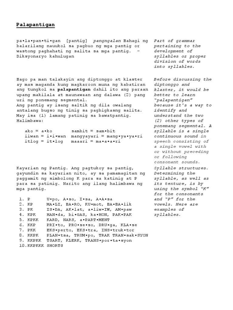 Ang ew ow at uw ay mga diptonggo subalit walang salita sa Filipino na may tunog na ganito. DOC Pantigdocx Grezel Caspe - Academiaedu. PAK GANERN Ang salitang Pak ay nagsimula sa salitang palo lumagapak at tumpak.