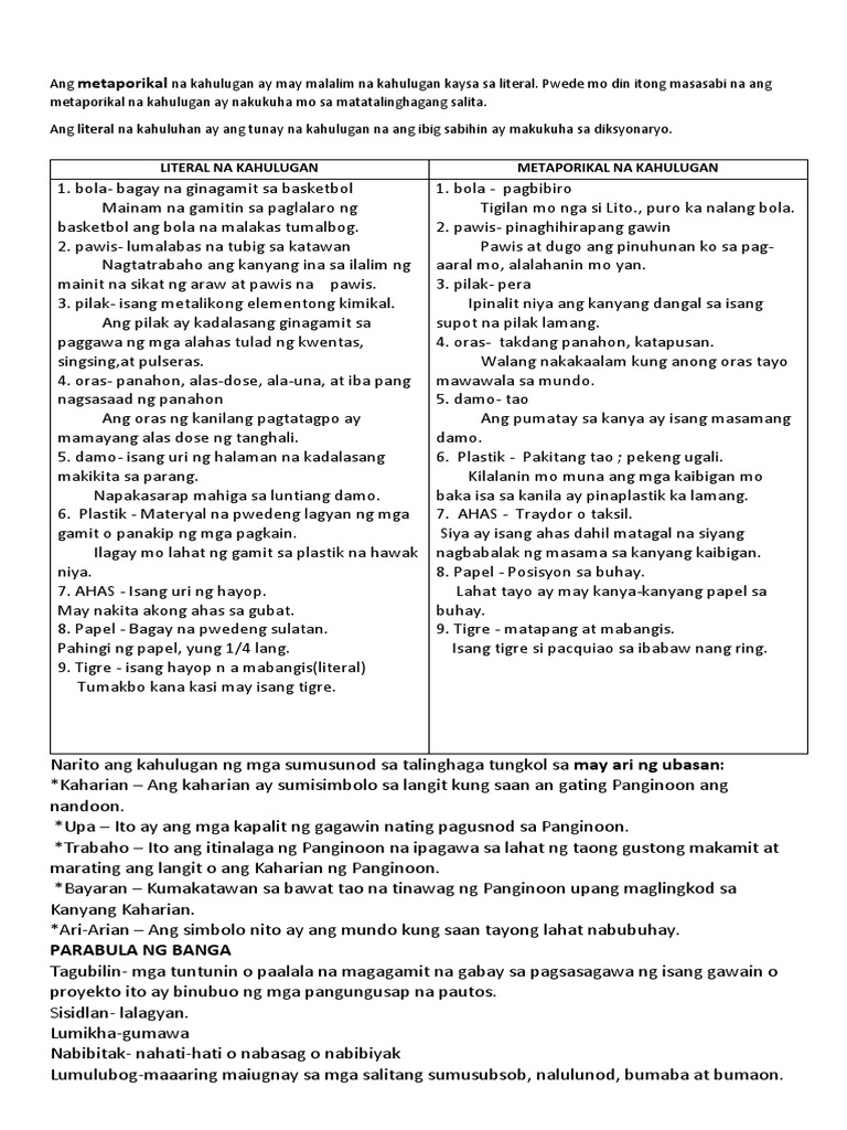 Metaporikal ng salitang oras. 3 paraan sa pagbibigay ng pagpapakahulugang metaporikal sa parabula. 1 Get Another question on Filipino. Ang pumatay sa kanya ay isang masamang damo.