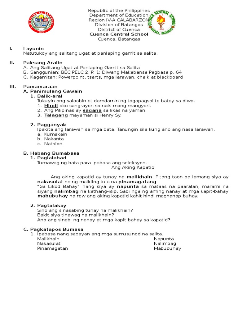 Displaying top 8 worksheets found for - Salitang Bilang. Comment s for this post PANLAPI. FILIPINO LESSON PLAN SAMPLE MASUSING BANGHAY ARALIN SA FILIPINO 2 I.